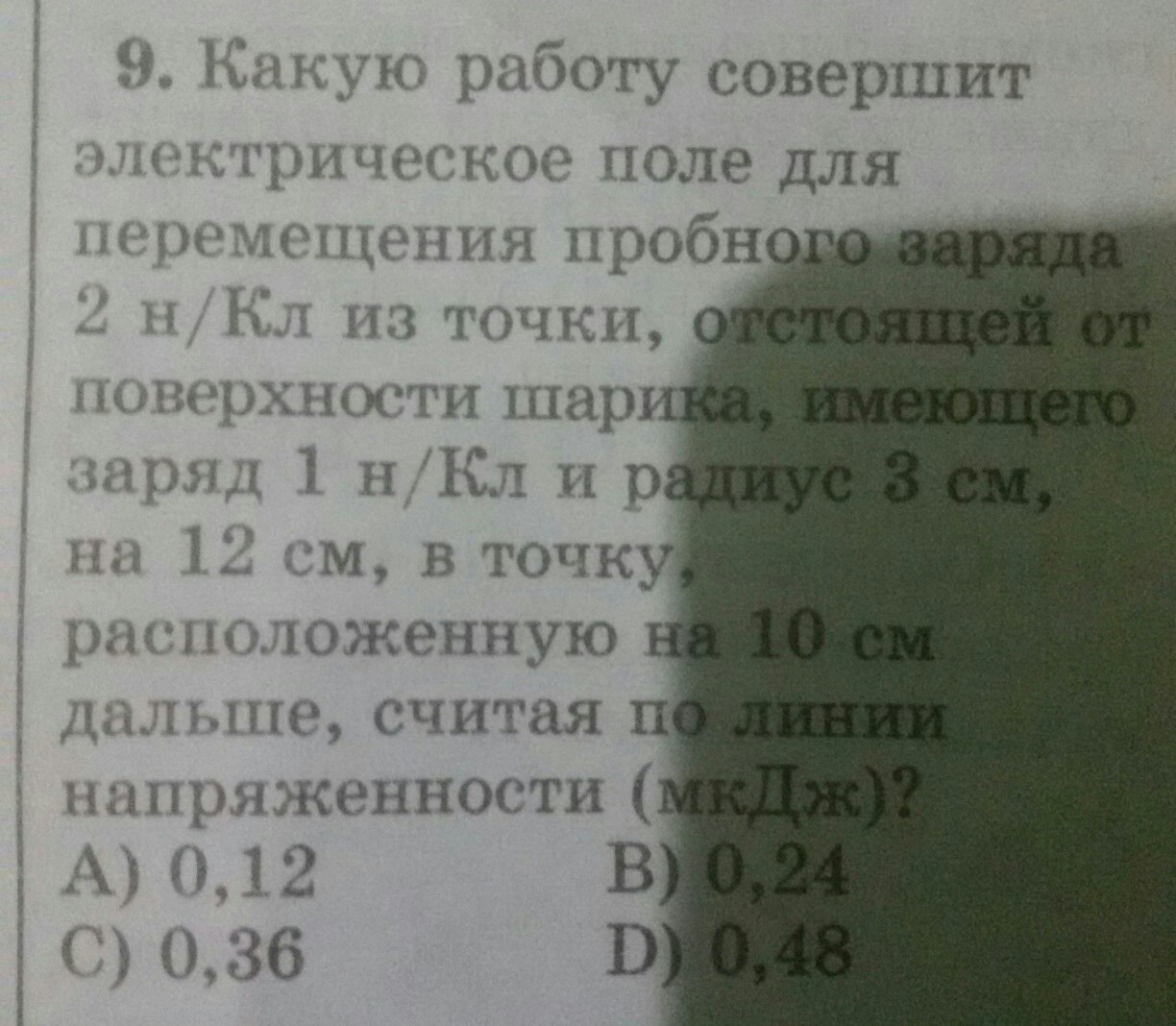 A = q₀·Δφ = 2·10⁻⁹· 24 = 48·10⁻⁹ Дж или 0,48 мкДж