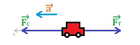 Легковая автомашина массой 1540 кг притормаживает на прямолинейном отрезке дороги. Модуль ускорения равен 1 мс2, а действующая на машину сила тяги равна 515 Н.