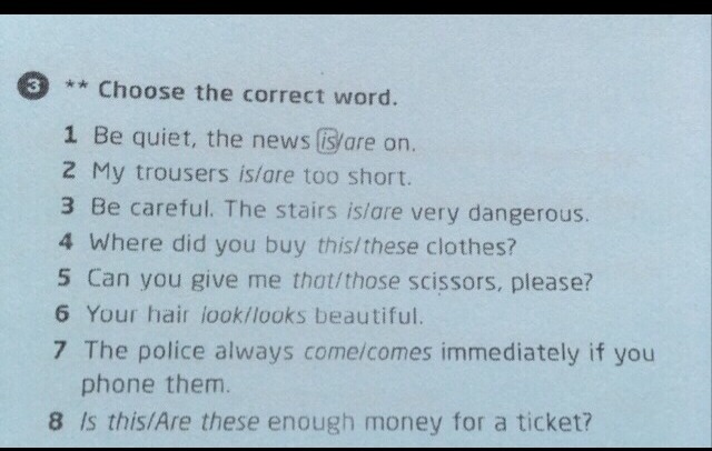 Trousers, stairs, scissors, clothes, police - всегда множ. ч.