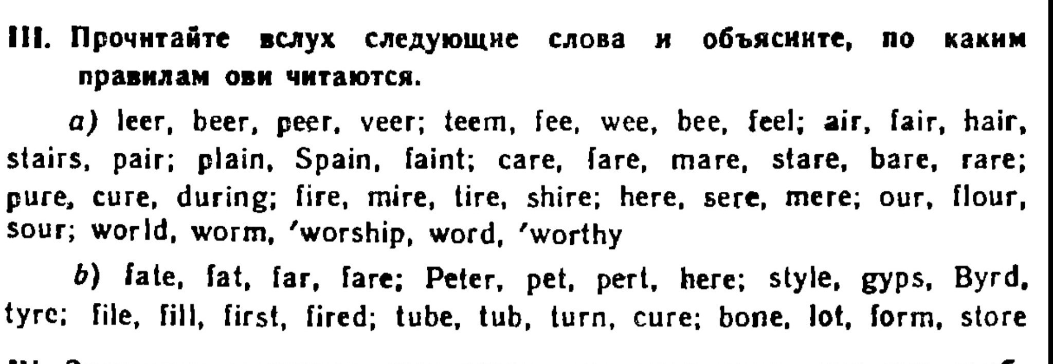 б) fate, fat, far, fare; Peter, pet, pert, here; style, gyps, Byrd, tyre; file, fill, first, fired; tube, tub, turn, cure; bone, lot, form, store