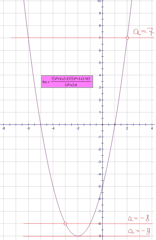 функция примет вид: у = (x - 1)(x + 5) при х≠-3 и х≠2 (они были в знаменателе и обращали знаменатель в 0; на ноль делить нельзя...)