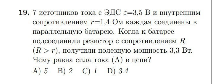 ε = 3,5 В - ЭДС батареи источников тока равна ЭДС одного элемента;