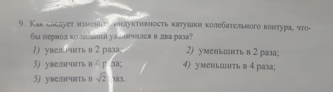 9. индуктивность увеличить в 4 раза ответ 3