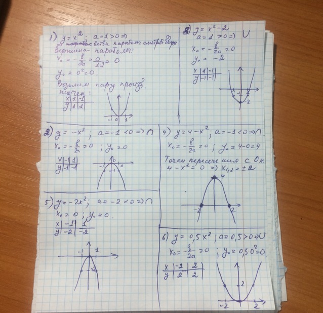 Каждая из заданных функций, является квадратичной (функцией вида y=ax^2+bx+c). Графиком квадратичной функции является парабола. Порядок построения параболы: