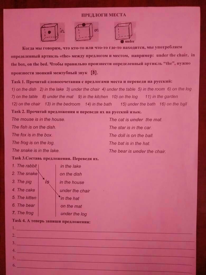 1.на блюде, в озере, под стулом, под столом, в комнате,на журнале,на столе, под ковриком, в кухне, на журнале, в саду,на стуле, в спальне, в ванной, под ванной, на мече.