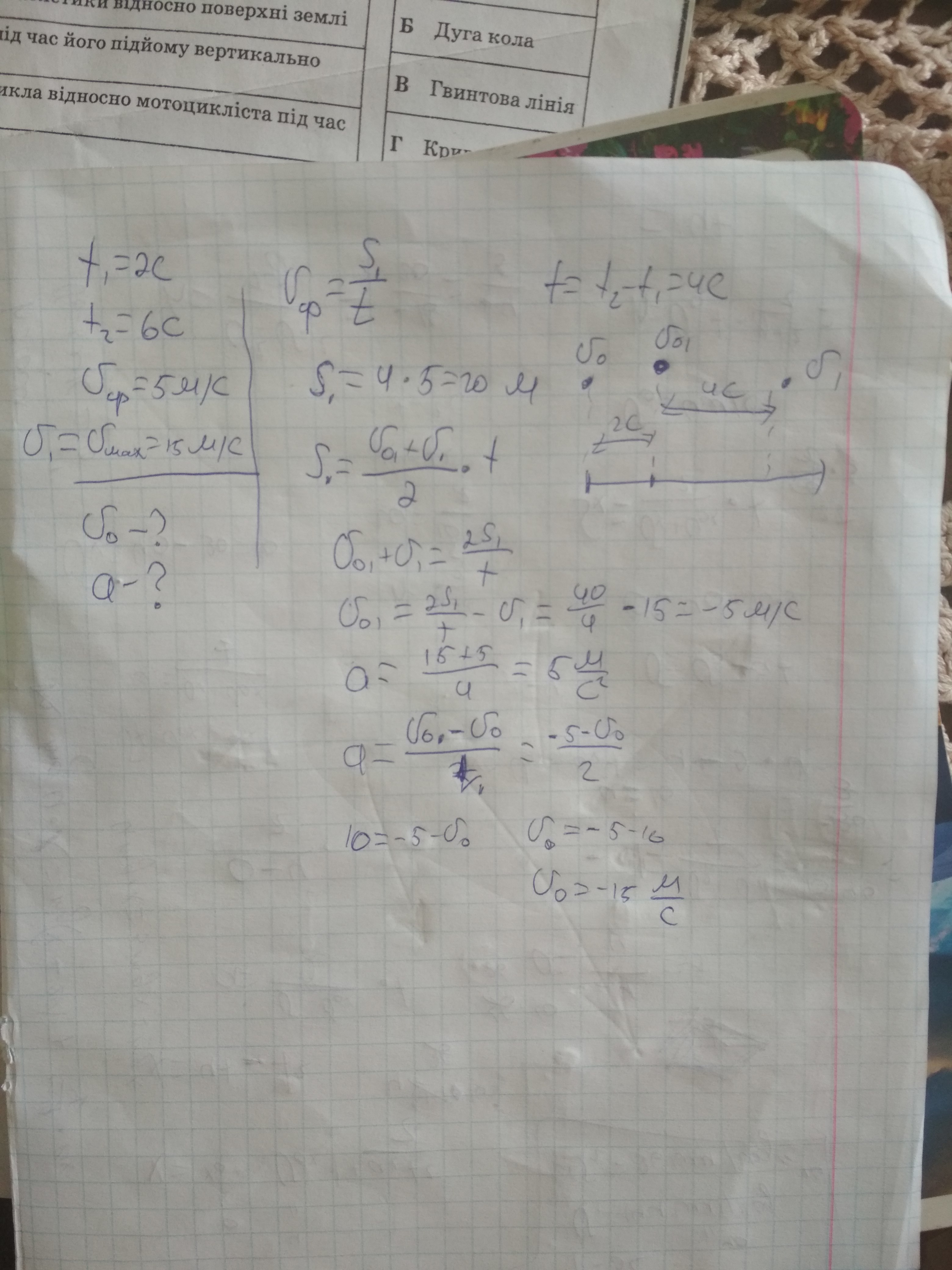 Нужно решение. Ответ -15м/с и 5 м/(с*с).