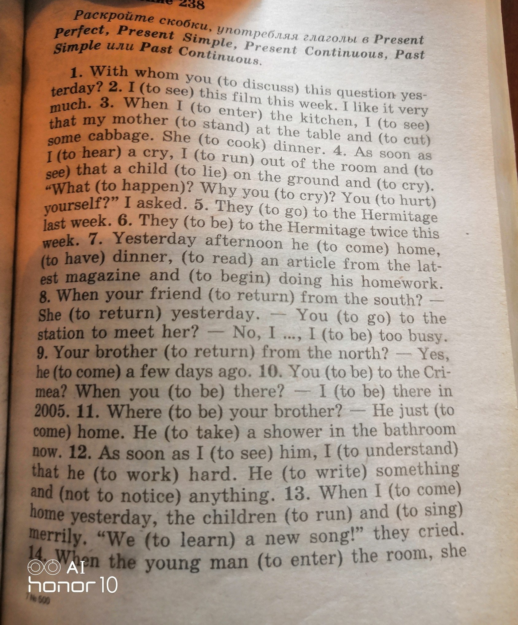 9. Has your brother returned from the north? — Yes, he came back a few days ago.