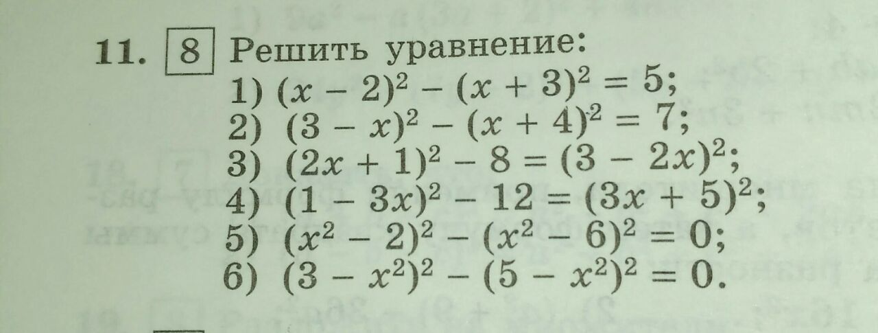 6) (3 - x^2)^2 - (5 - x^2)^2 = 0