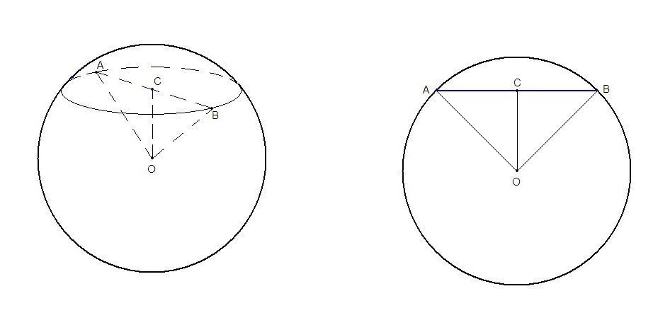 Сечение шара - круг. Пусть С - его центр, АВ - диаметр сечения.