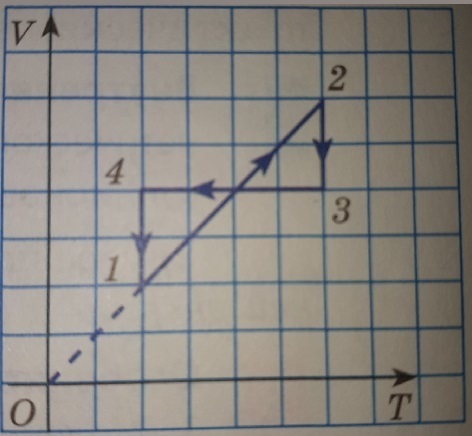 На рисунке изображен график процесса, происходящего с идеальным газом. Изобразите график этого процесса в координатах p, V и p, T.
