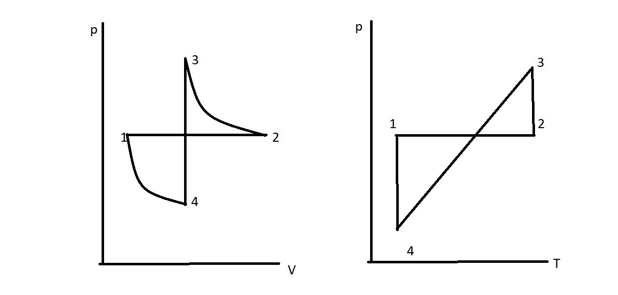 Изотерма 2-3 при более высокой температуре чем 4-1