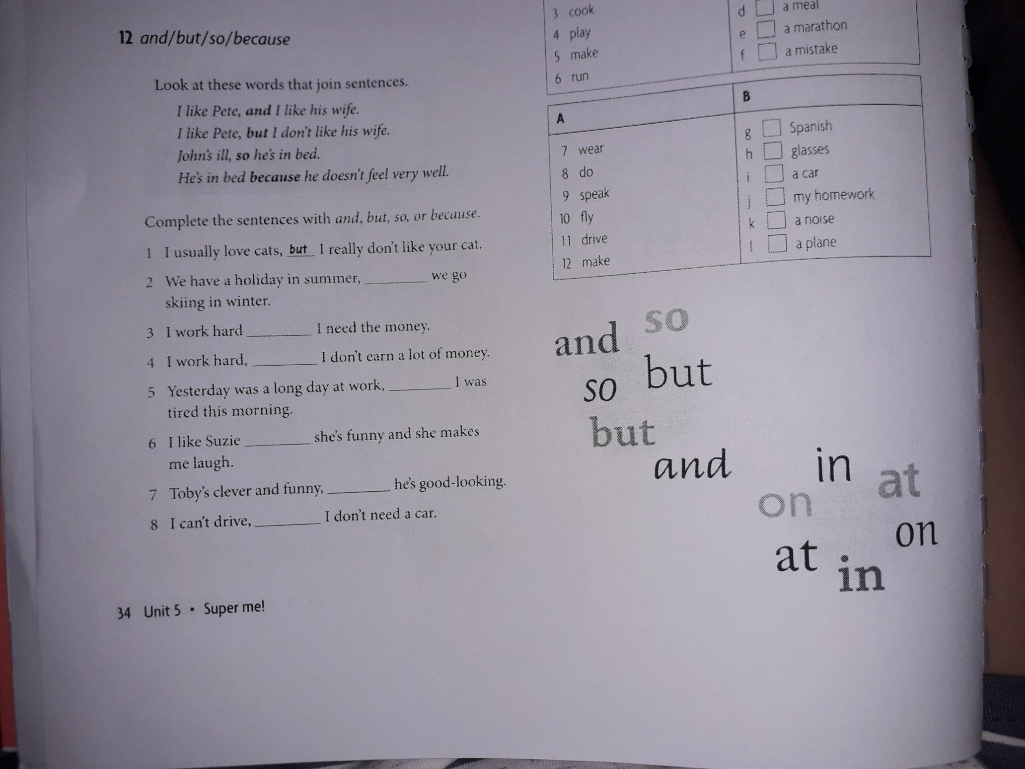 помогите очень срочно пожалуйста очень срочно Английский язык заранее говорю спасибо вам большое 12 слова but so and but and in at on at in on вместе с 12