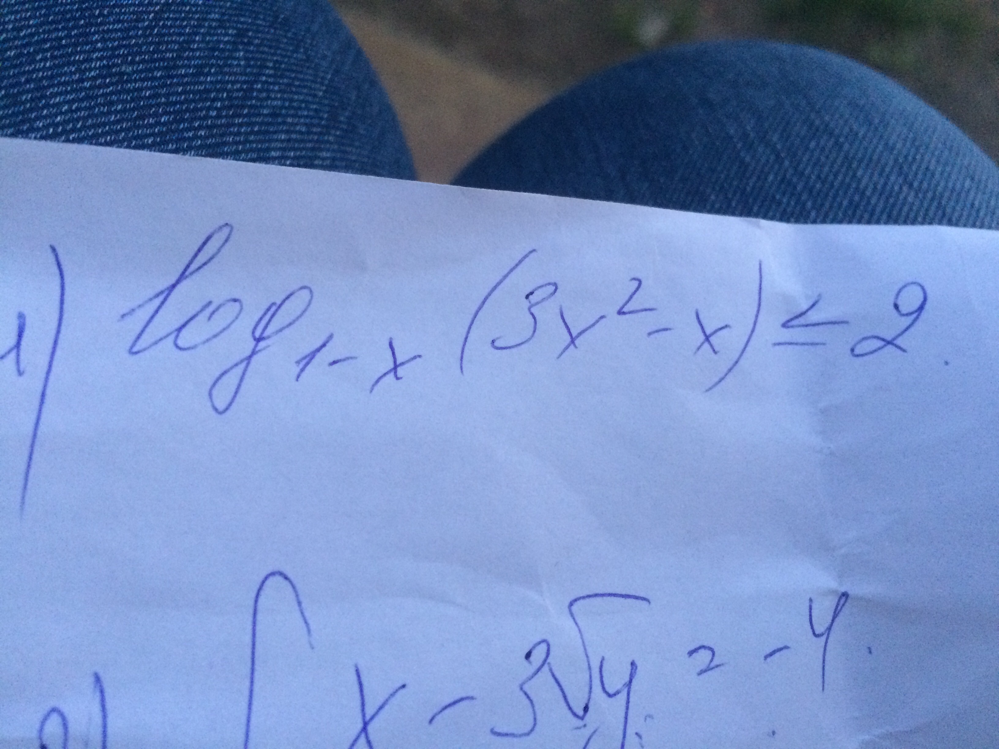 Сверху log (3x в квадрате - x) меньше или равно 2