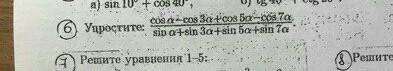 Типо cos(альфа) -cos(бета) =2sin(альфа-бета) /2 * sin (альфа+бета) /2