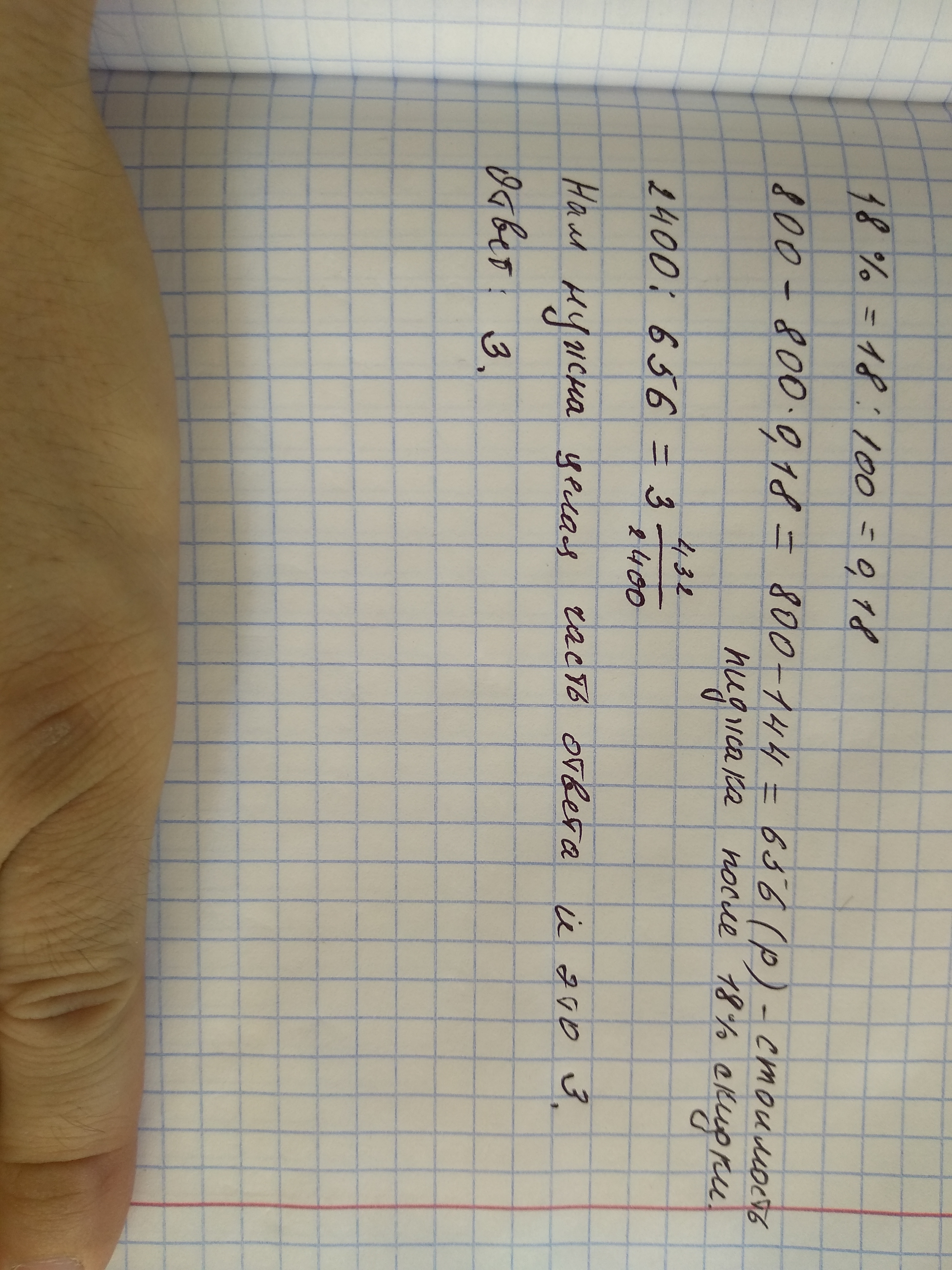 пиджак стоит 800 рублей какое наиболbшее число пиджаков можно купитb на 2400 рублей во время распродажи, когда скидка сост. 18%