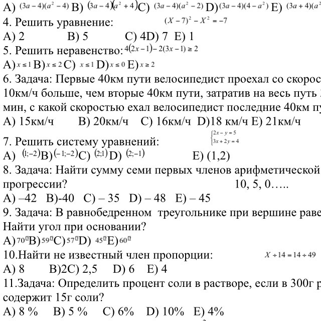 8) S7 = (2a1 + d*(n - 1))/2 * n = (2a1 + 6d)/2 * 7 = (a1 + 3d)*7