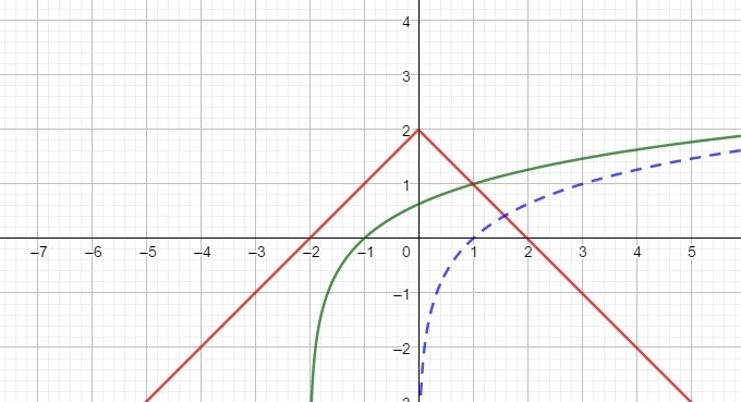 Рассмотрим функции у = log₃(x+2) и у = 2 - |x| и построим их графики.
