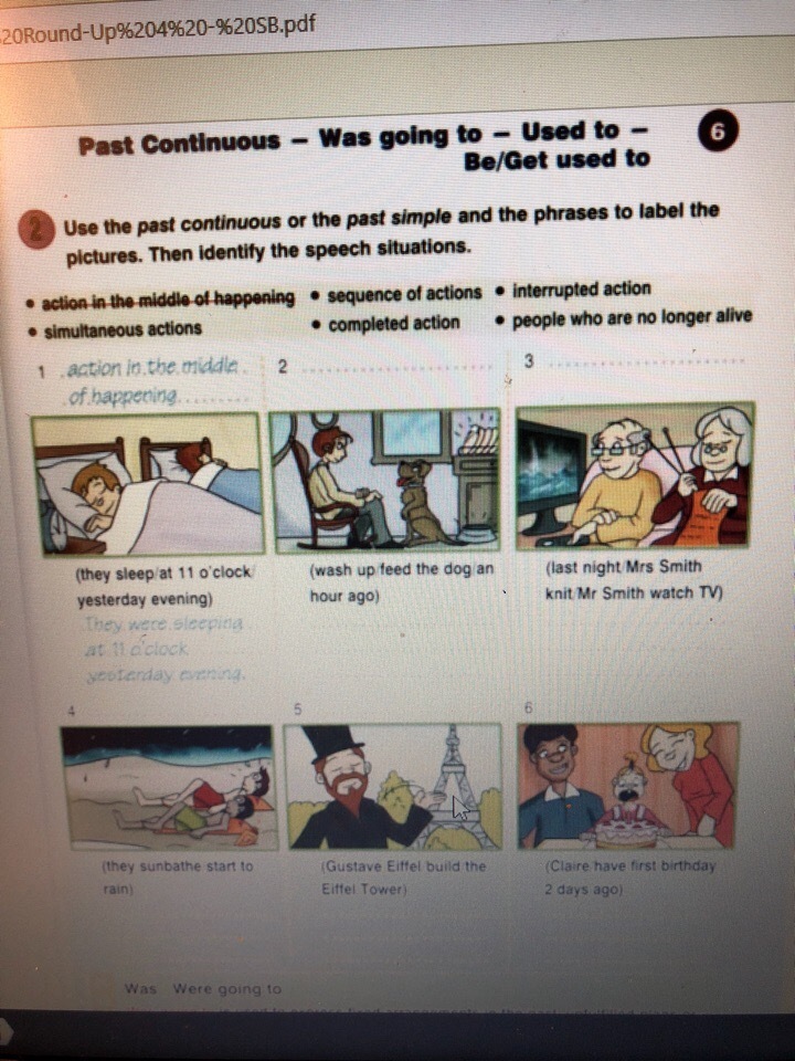 3 Mrs Smith was knitting and Mr Smith was watching TV last night. (simultaneous actions)