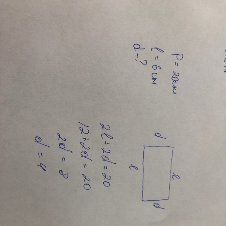 b = P/2 - a = 20 : 2 - 6 = 10 - 6 = 4 (см)