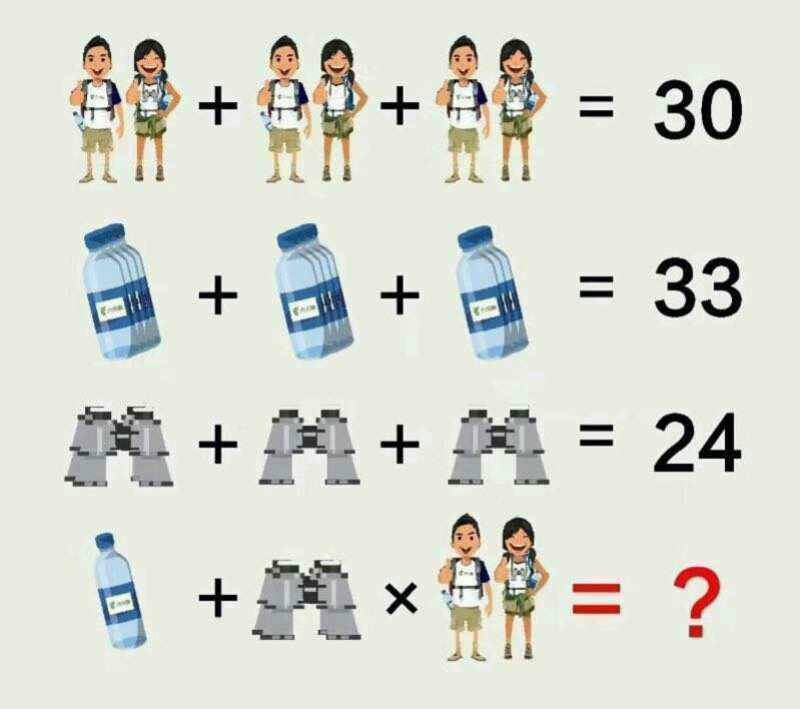 3 пары + 2 бинокля + 4 бутылки (2 в карманах мальчика и 2 в руках у крайних девочек) = 30