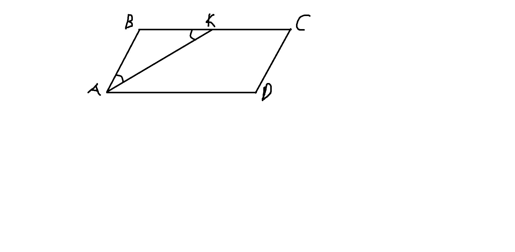 На рисунку АК - бісектриса кута А паралелограма АБСД. Кут БКА= 35 градусов. Знайти кут А паралелограма