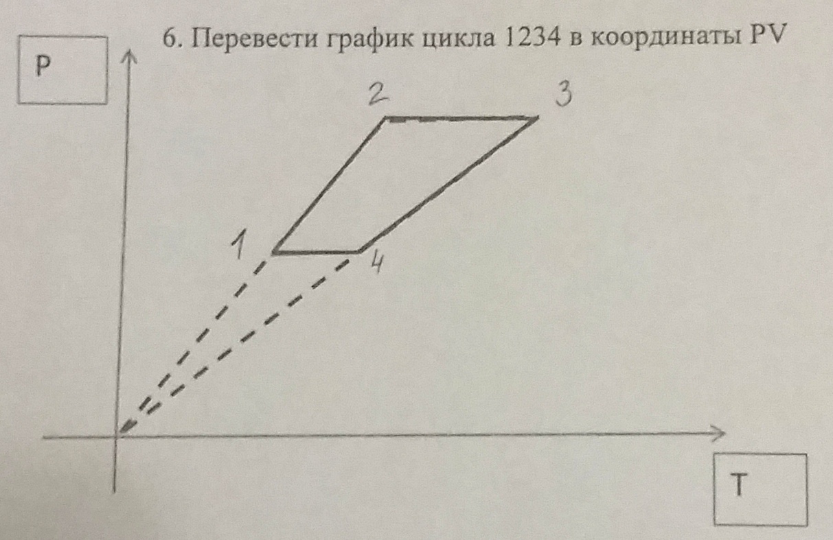 По начальному графику цикла 1234 в координатах pT определим значения (направления) давления, объёма и абсолютной температуры.