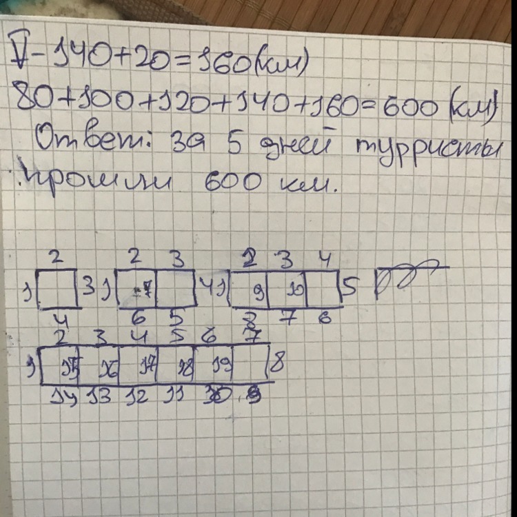 1818. В 1 день туристы прошли х км, во 2 день - (х+20) км, в 3 день - (х+20)+20=(х+40) км , в 4 день - (х+40)+20=(х+60) км , в 5 день - (х+60)+20=(х+80) км .