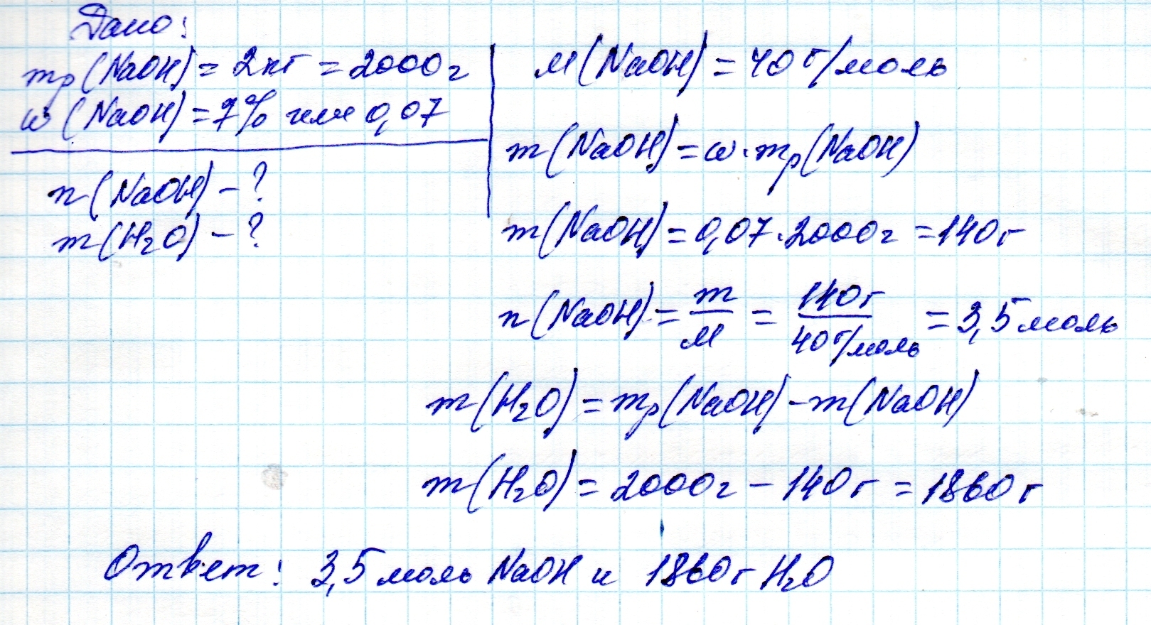 Какое количество NaOH нужно использовать для приготовления 2кг 7% р-ра ? Какую массу воды использовать ?