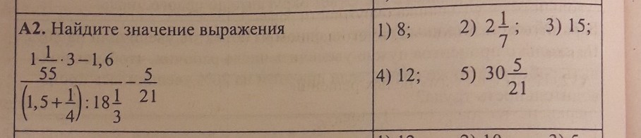 (1 1/55 * 3 -1,6)/((1,5+1/4)/18 1/3) - 5/21=15