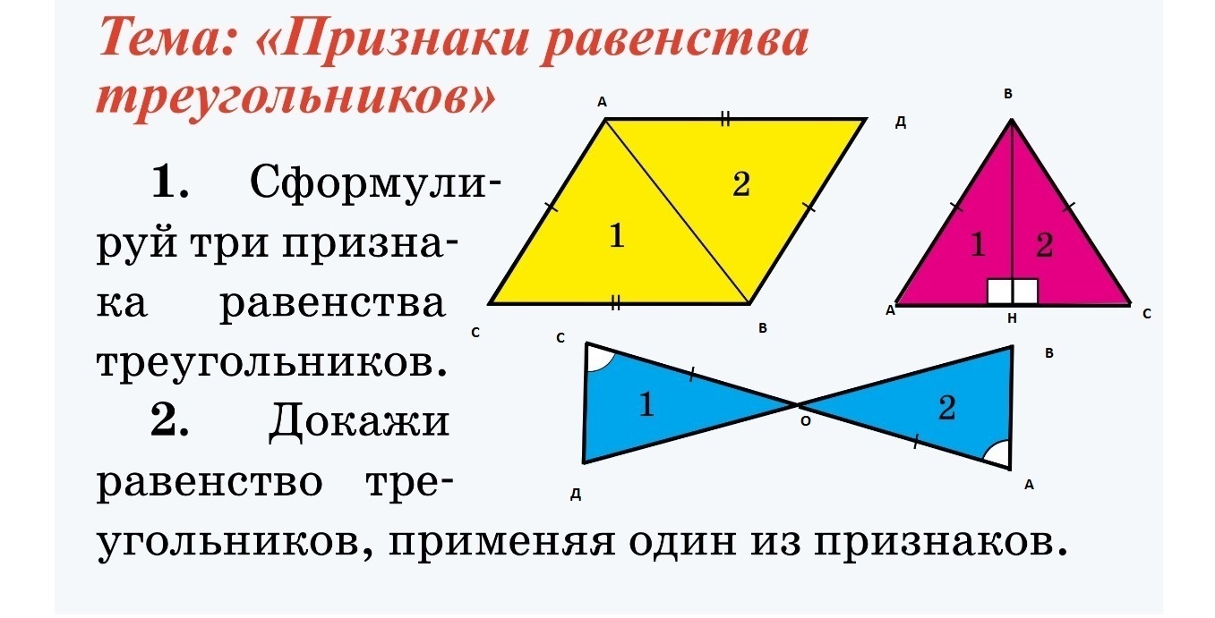 Когда три стороны первого треугольника соответственно равны трем сторонам второго треугольника, то они равны.