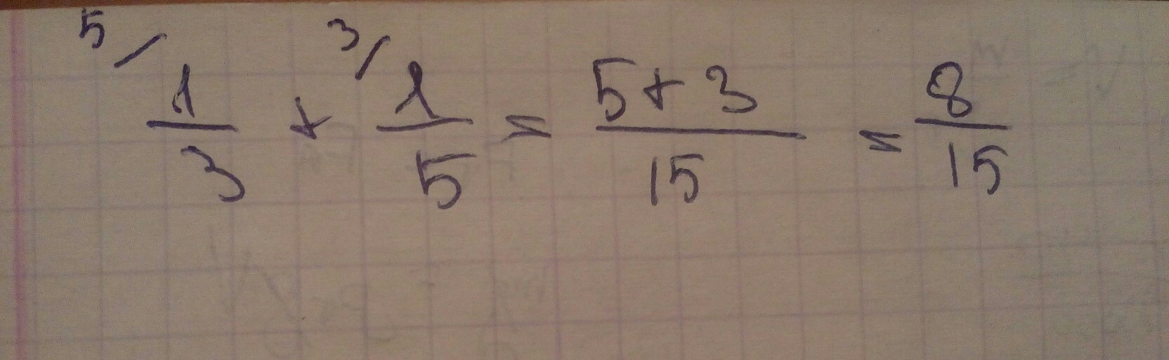 Чему равна сумма 1/3+1/5? (Ответ запишите в виде несократимой дроби, используя знак / для дробной черты)