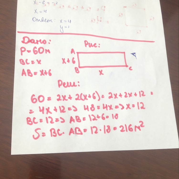 3) 12 × 18 = 216 ( м² ) - площадь (S) прямоугольника.