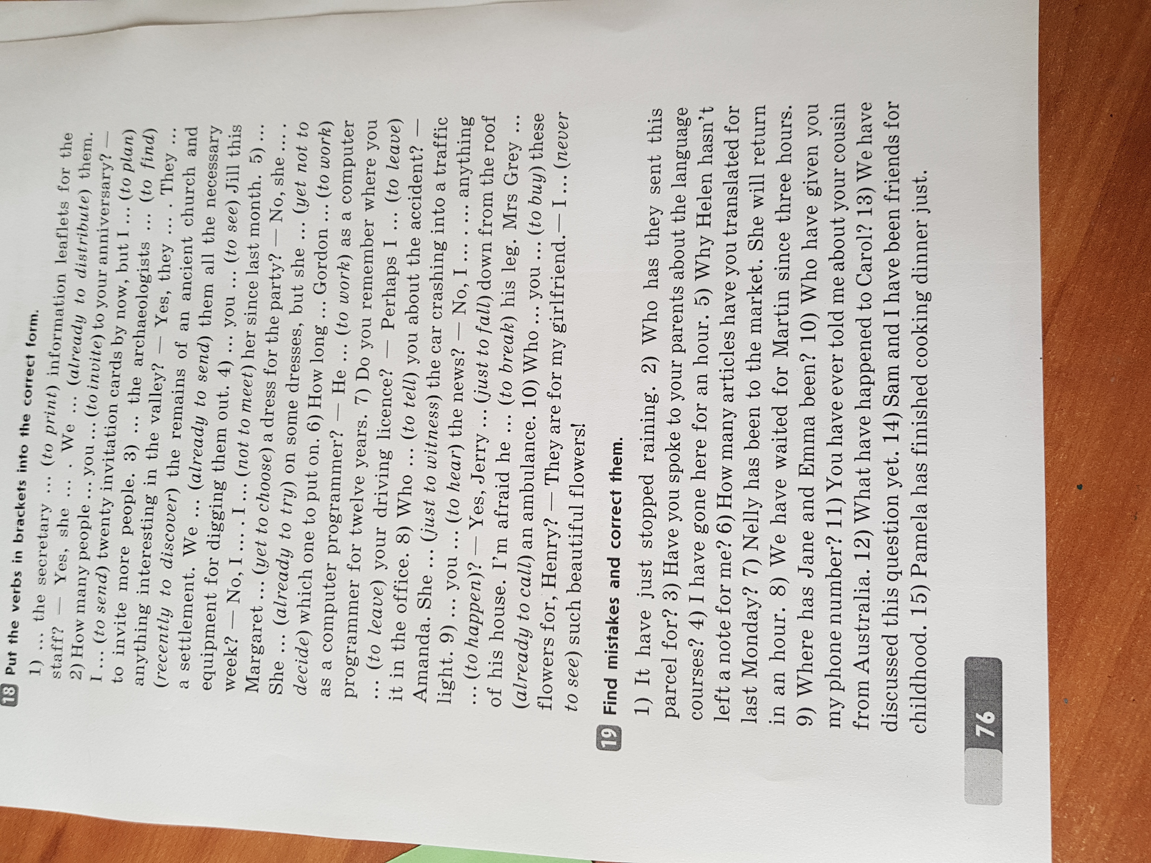 9) Have you heard the news? — No, I haven't. Has anything happened? — Yes, Jerry has just fallen down from the roof of his house. I'm afraid he has broken his leg. Mrs Grey has already called an ambulance.