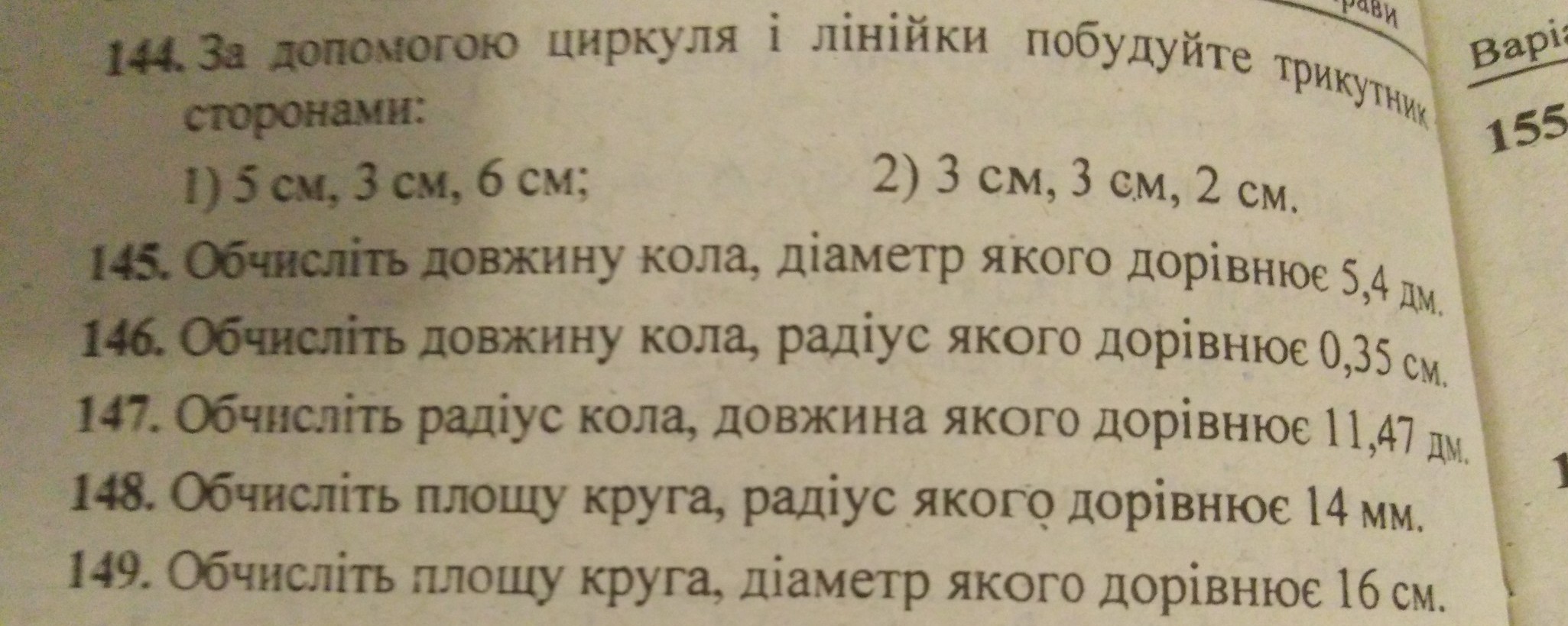 145) L = 2piR = 2pi*D/2 = pi*D = 5,4pi (дм)