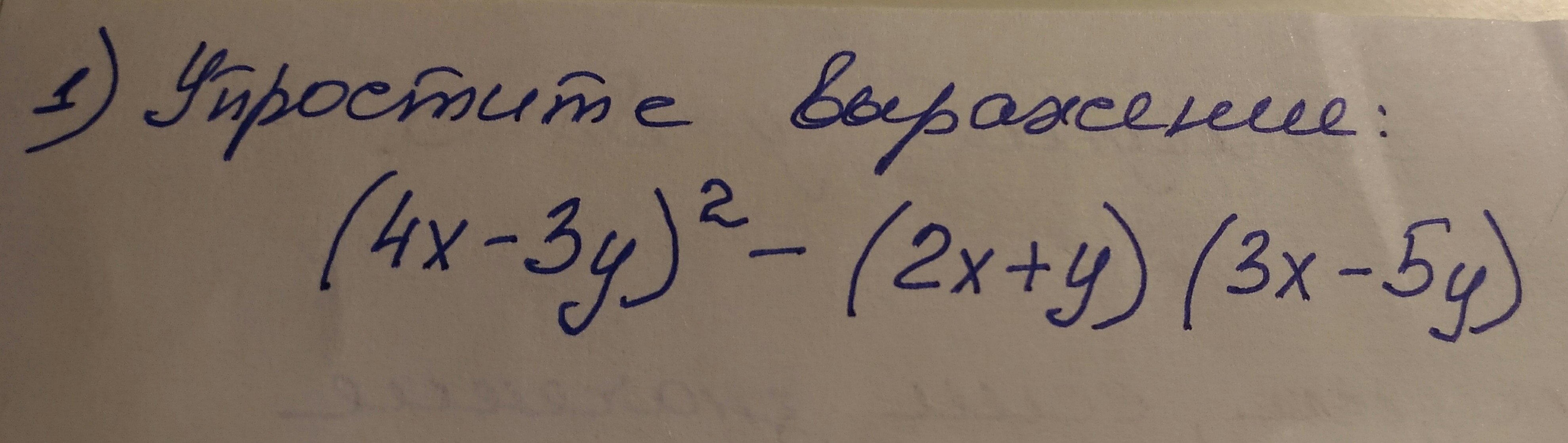 1) (4x - 3y)² - (2x + y)(3x - 5y) = 16x² - 24xy + 9y² - (6x² + 3xy - 10xy - 5y²) = 16x² - 24xy + 9y² - 6x² - 3xy + 10xy + 5y² = 10x² - 17xy + 14y²
