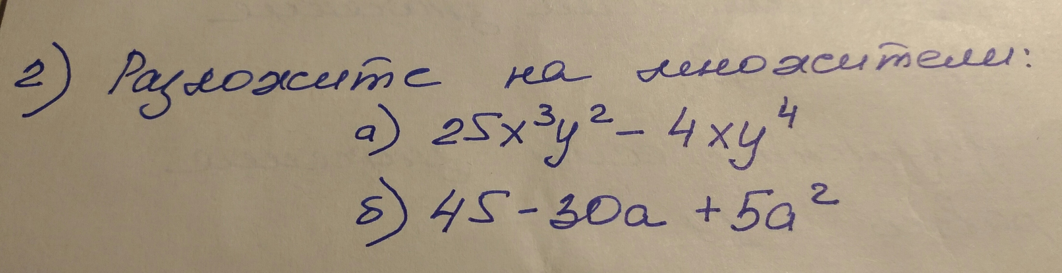 2) a) 25x³y² - 4xy⁴ = xy²(25x² - 4y²) = xy²(5x - 2y)(5x + 2y)