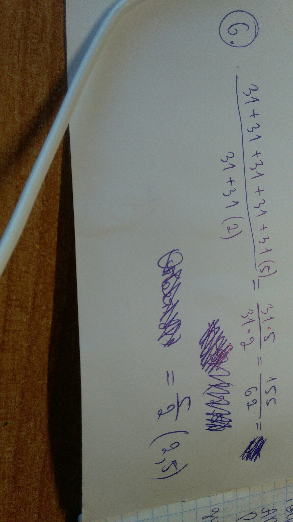 (31+31+31+31+31) / (31+31) = (31*5) / (31*2) = 155/62 =5/2