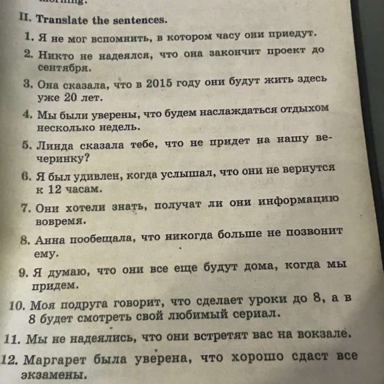 6) I was surprised when I heard that they would not be back by 12 o'clock.
