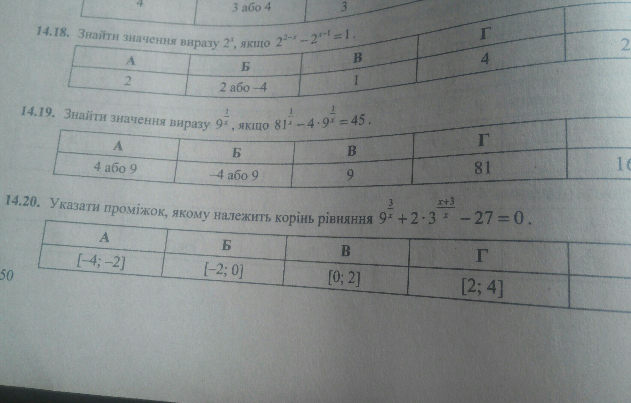 19) 81^(1/x) - 4*9^(1/x) = 45, x ≠ 0