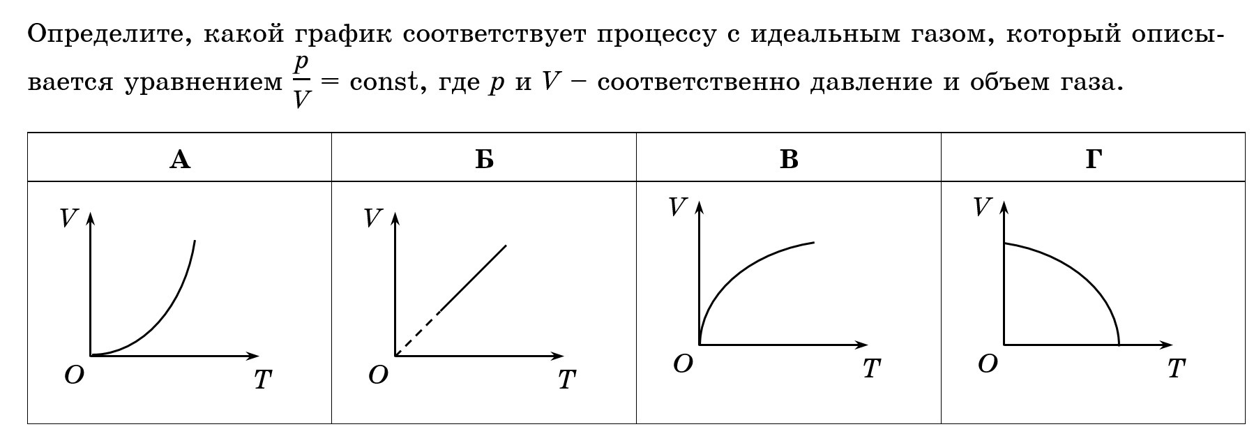 Чтобы определить, какой это график, можем сразу откинуть вариант Б, так как это график изобарного процесса.