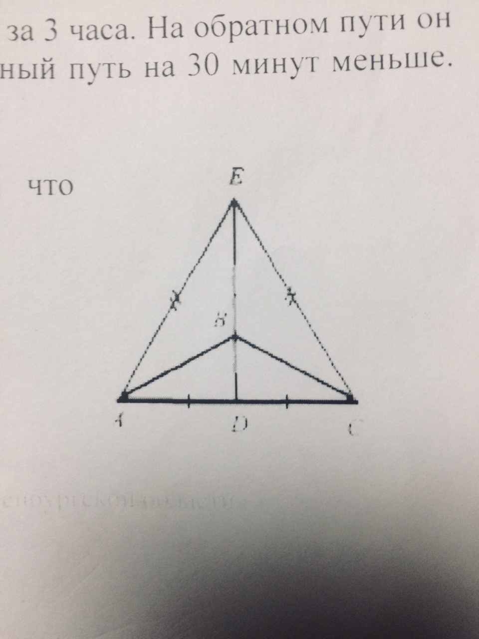 Помогите доказать: В треугольнике ACE AE=CE и AD=DC. Докажите, что треугольник ABC - равнобедренный.