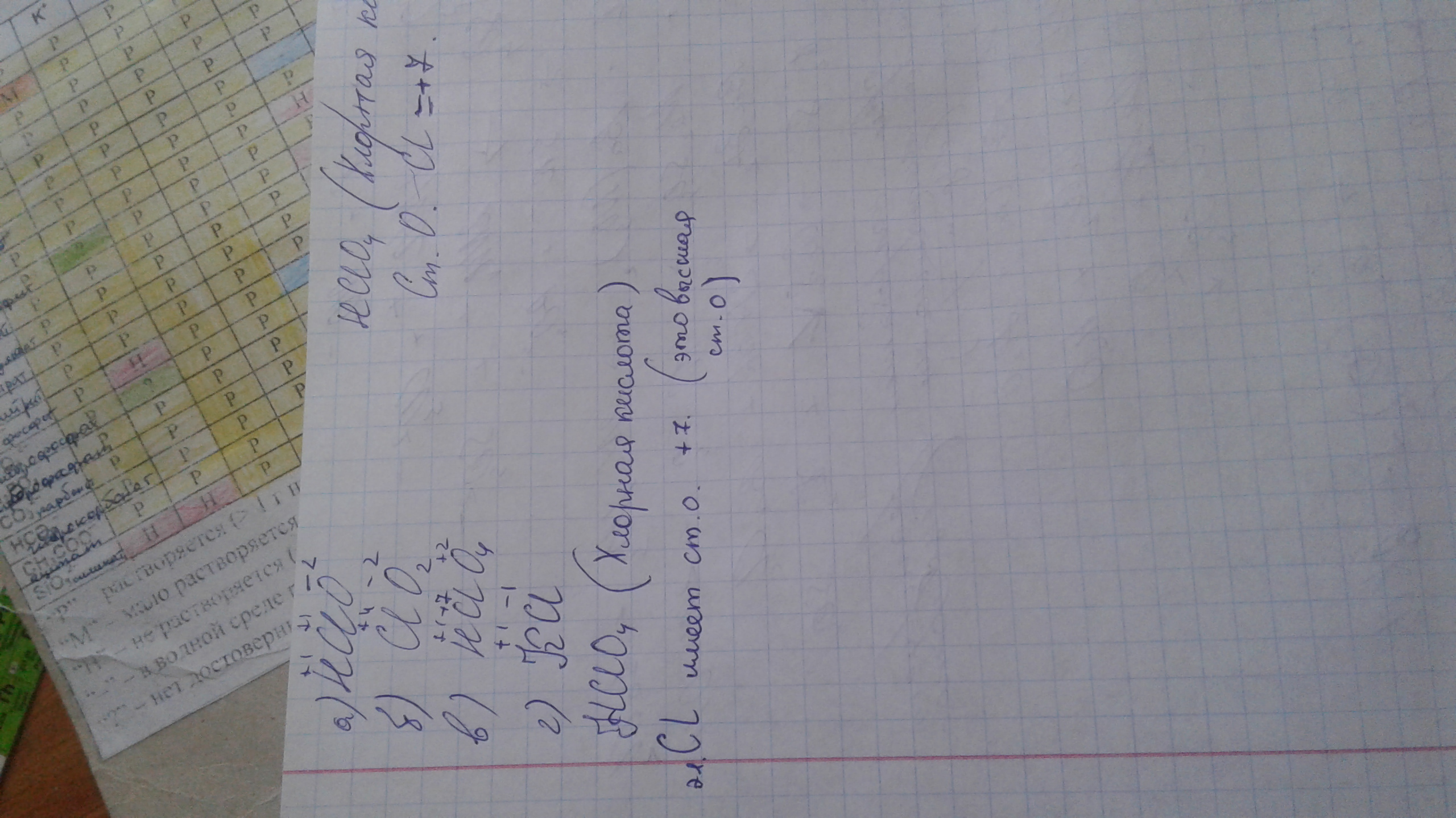 определите степени окисления всех элементов и укажите формулу соединения,в котором хлор находится в высшей степени окисления(назовите его): а)HClO б)ClO2 в)HClO4 г)KCl