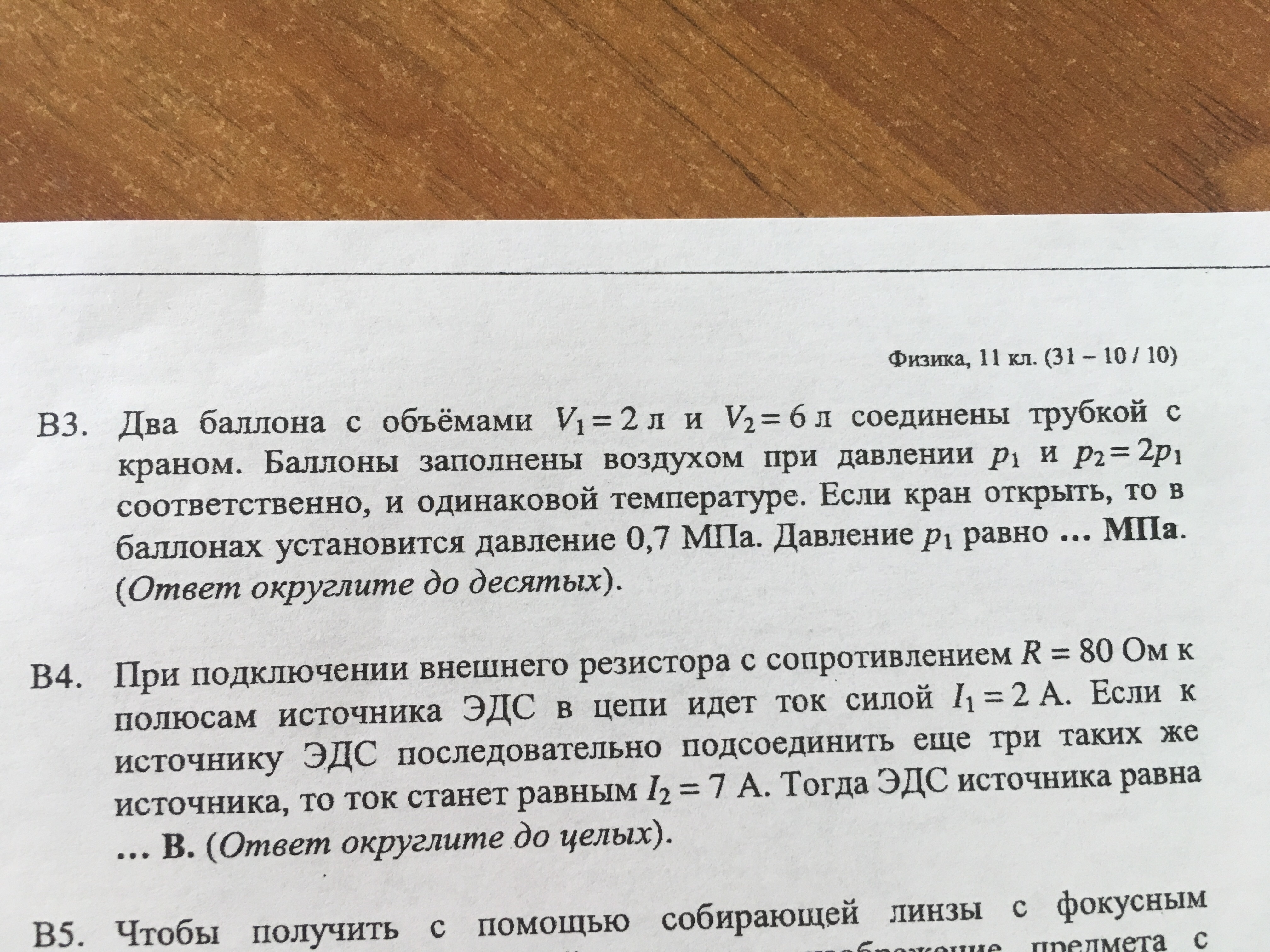 В задаче B3 необходимо несколько раз применить уравнение состояния идеального газа. Расписываем уравнения для первого и второго баллона, складываем их, а потом пишем уравнение для "общего" баллона (когда кран открыт).