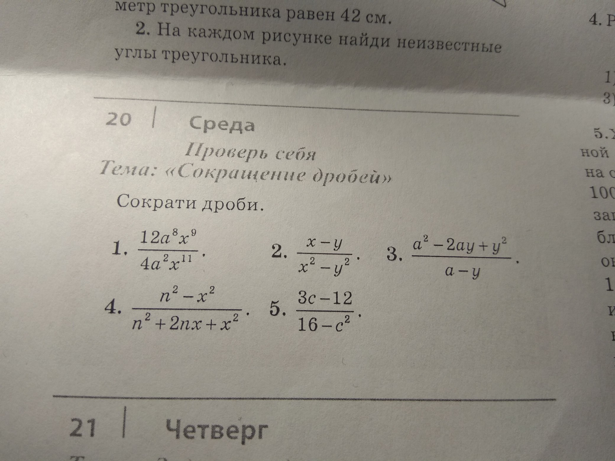 3. (a^2-2*a*y+y^2)/(a-y)=(a-y)^2/(a-y)=a-y;