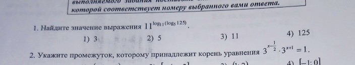11^(log11(log5(125)) = 11^(log11(3) = 3