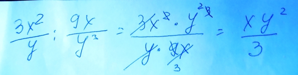 (3х²/у):(9х/у³)=3х²/у*у³/9х=ху²/3