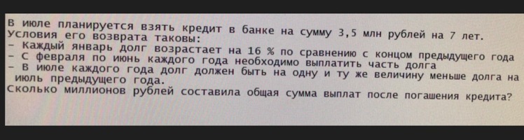 Что же происходит каждый год? В январе растёт долг: . С февраля по июнь выплачивается часть долга, а затем долг становится на