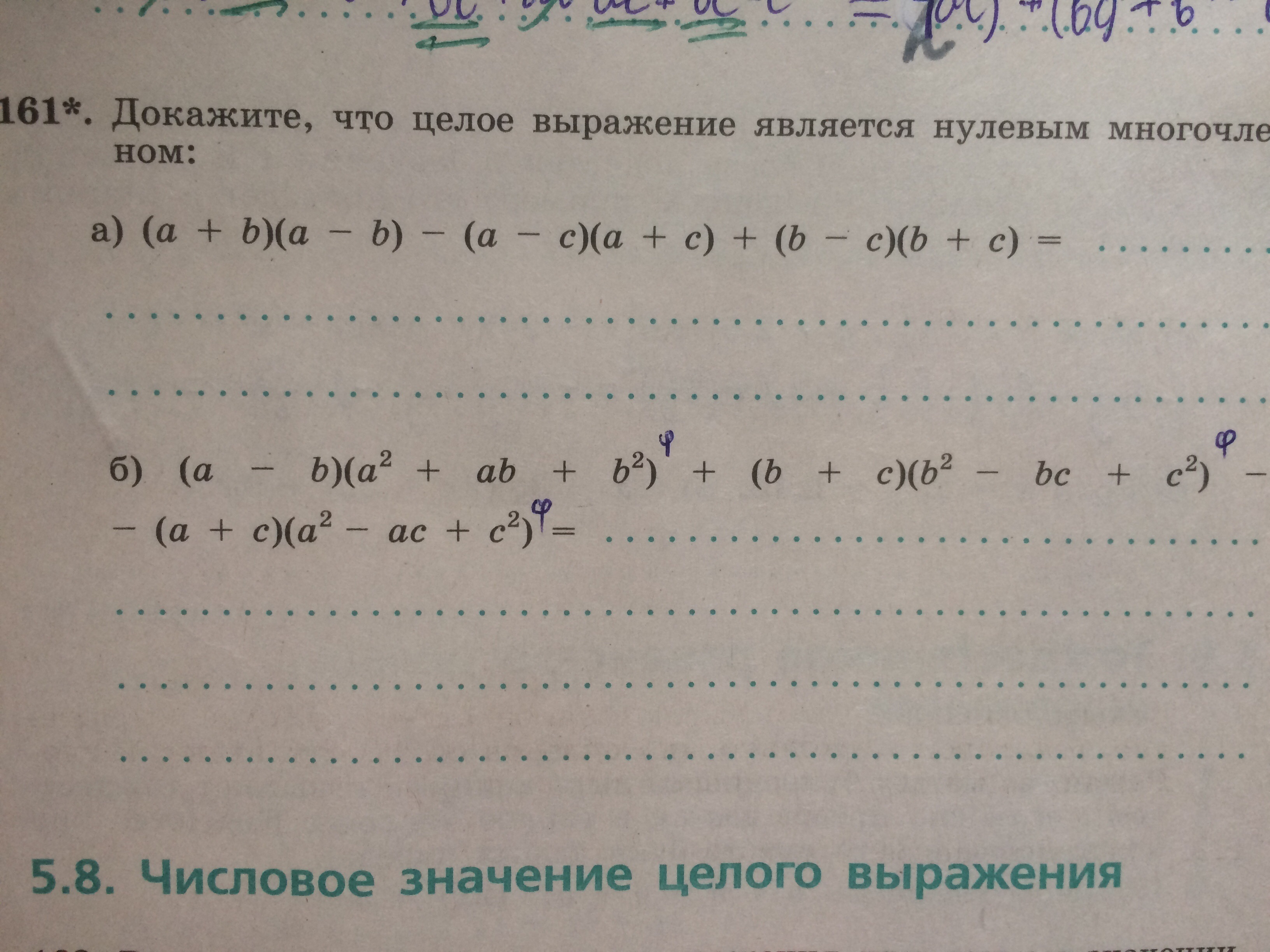 б) (a - b)(a² + ab + b²) + (b + c)(b² - bc + c²) - (a + c)(a² - ac + c²) = a³ - b³ + b³ + c³ - (a³ + c³) = a³ - a³ - b³ + b³ + c³ - c³ = 0