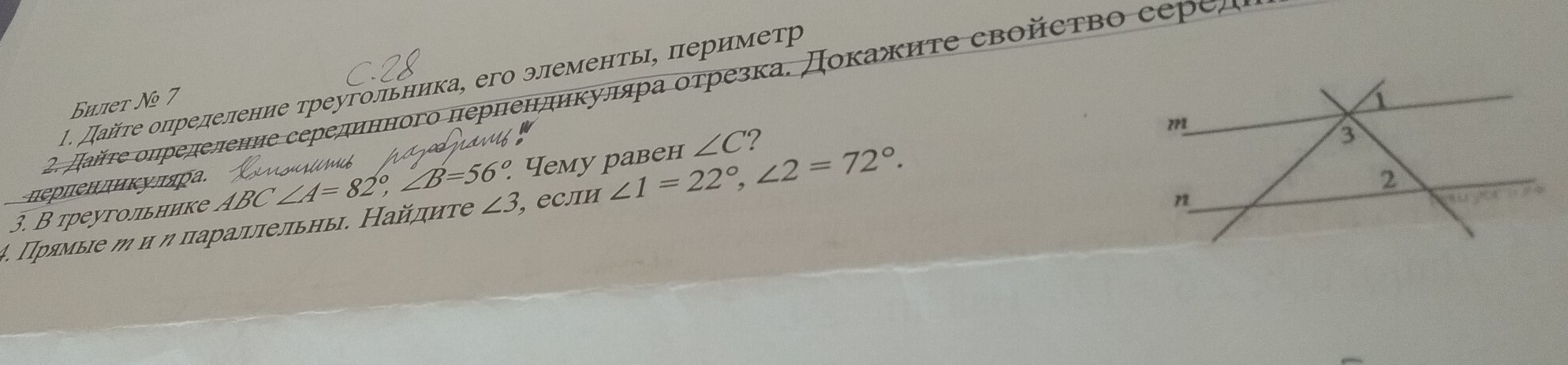 3) ∠А+∠В+∠С=180° ⇒ ∠С=180°-∠А-∠В=180°-82°-56°=42°