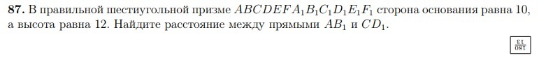 Значит, расстояние между плоскостями AB1F1 и CED1, равное расстоянию между прямыми АВ1 и CD1, равно 180 / 13